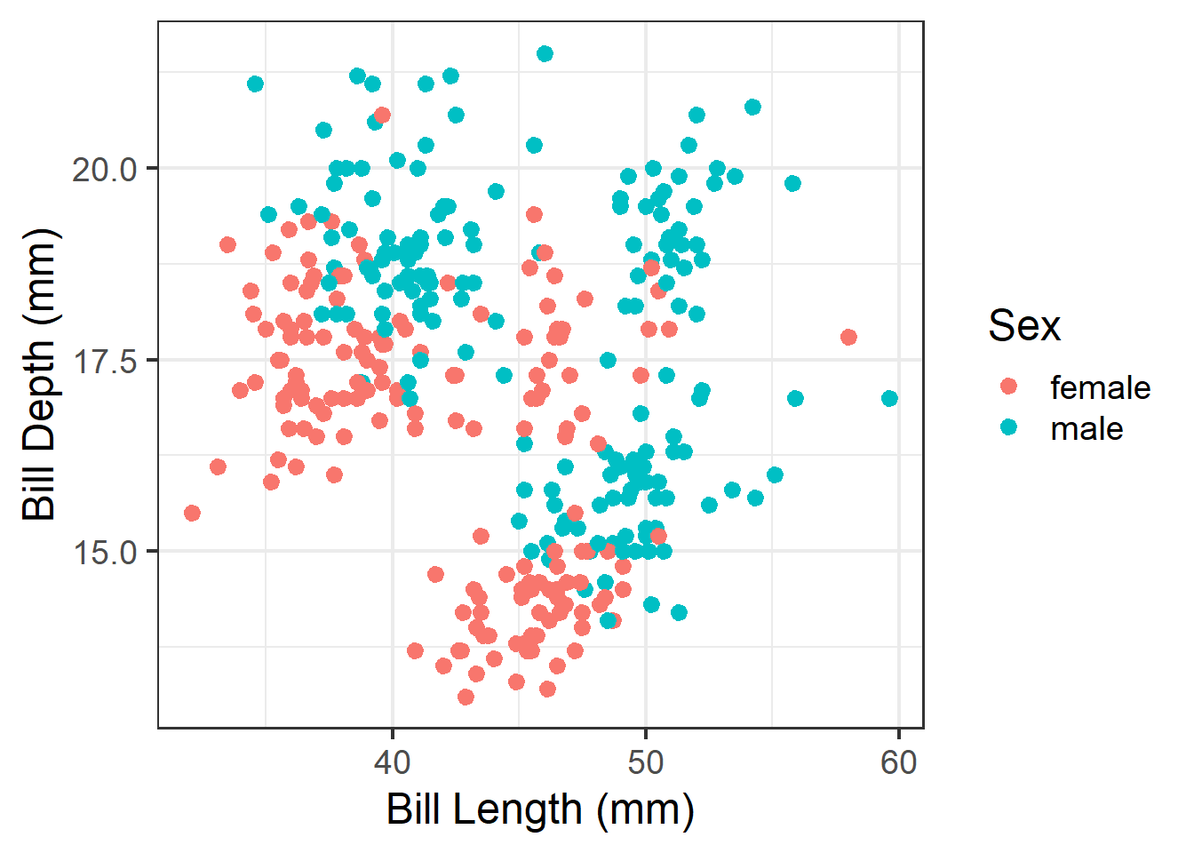 model <- lm(`Bill Depth (mm)` ~ `Bill Length (mm)` + Sex, data=analysis.data)